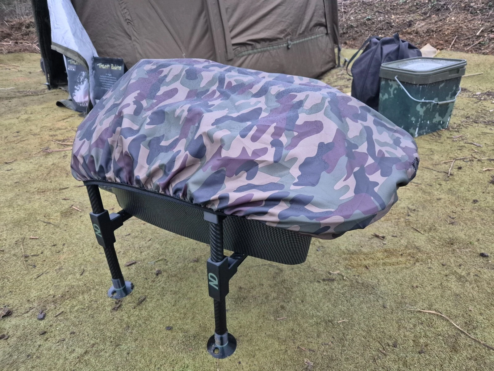 If you also have one of our bait boat stands we have sewn in a velcro strap to allow you to secure the cover to the front bar of the stand so it simply pulls on and off whilst on the bank